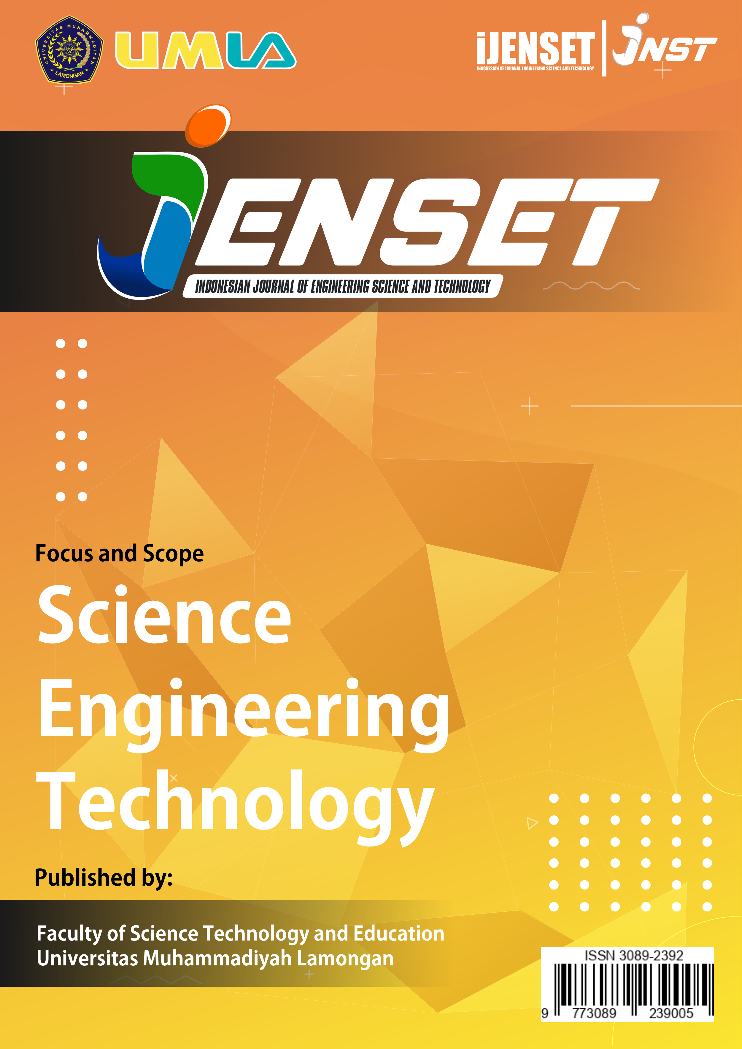 Indonesian Journal of Engineering, Science and Technology (IJENSET) is an open access and peer-reviewed scholarly journal published by the Faculty of Science Technology and Education, Universitas Muhammadiyah Lamongan. The purpose of this journal publication is to disseminate new theories and research results that have been achieved in the field of Engineering (Industrial Engineering), Science (Biology and Physics), Technology (Computer Science, Medical of Informatics). IJENSET is providing a platform that welcomes and acknowledges high quality empirical original research papers about education written by researchers, academicians, professionals, and practitioners from all over the world.